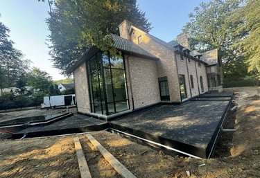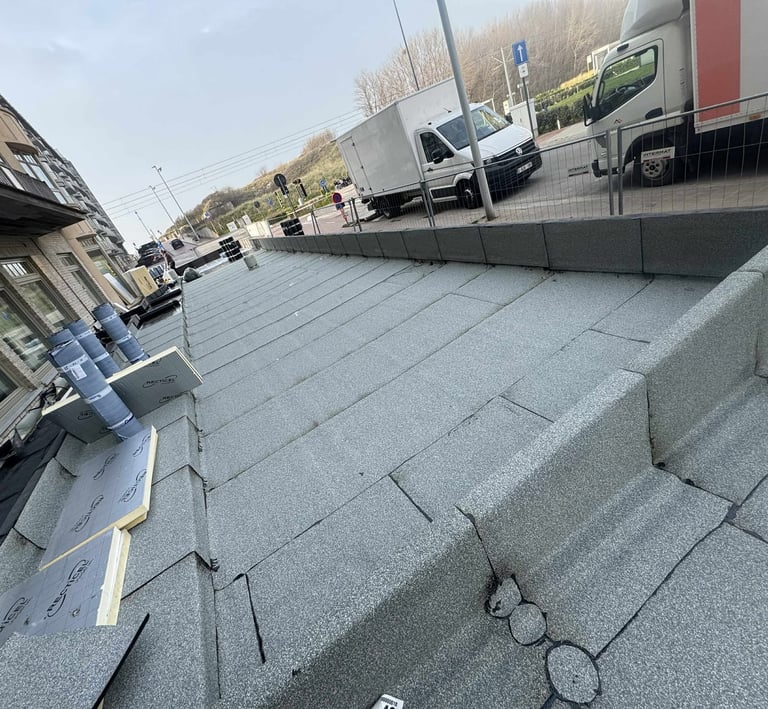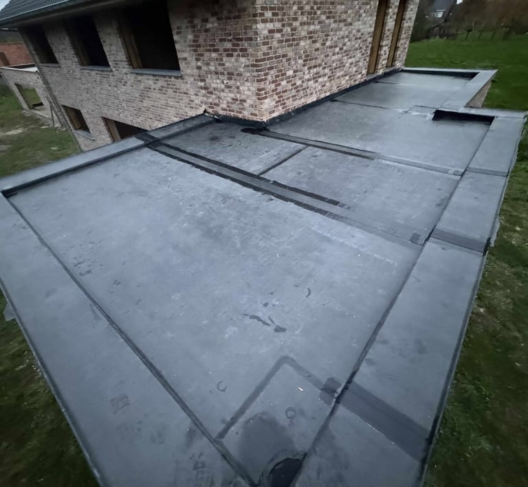 Vakkundige aanleg van platte daken bij nieuwbouwprojecten in West- en Oost-Vlaanderen.